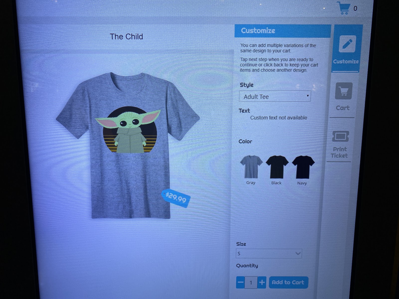 Each shirt is $29.99 for the standard design and choice of shirt color. Additionally, Disney is also selling two pre-made designs: The Child and Star Wars The Mandalorian.