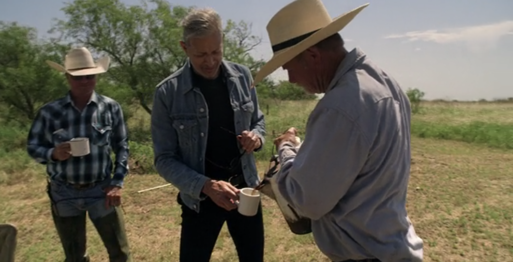 We’re back for a new episode of The World According to Jeff Goldblum and today’s topic is coffee! The tasty dark beverage has been around for centuries and is consumed the world over. To get us started Jeff heads to the cattle country in Texas where he meets real life cowboy Kent Rollins who keeps the traditions of old west cooking alive. Kent has perfected the art of making cowboy coffee and discusses the history of the beverage with Jeff.