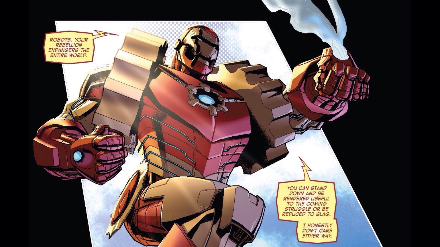 But, like almost all comic series, there is an obstacle to get past before out hero gets to the true big bad. In this case, it’s the robot revolution, with machines fighting back against humanity. This is a very strange aspect of the story. It feels like something that could be treated as a major story, drawing in many of our favorite Marvel heroes. Instead, it almost seems to be treated as a joke or a minor inconvenience Arno is looking past as he prepares for the real fight. It doesn’t seem as though the robots are being taken seriously and whether or not they will give the humans a reason to change that remains to be seen.