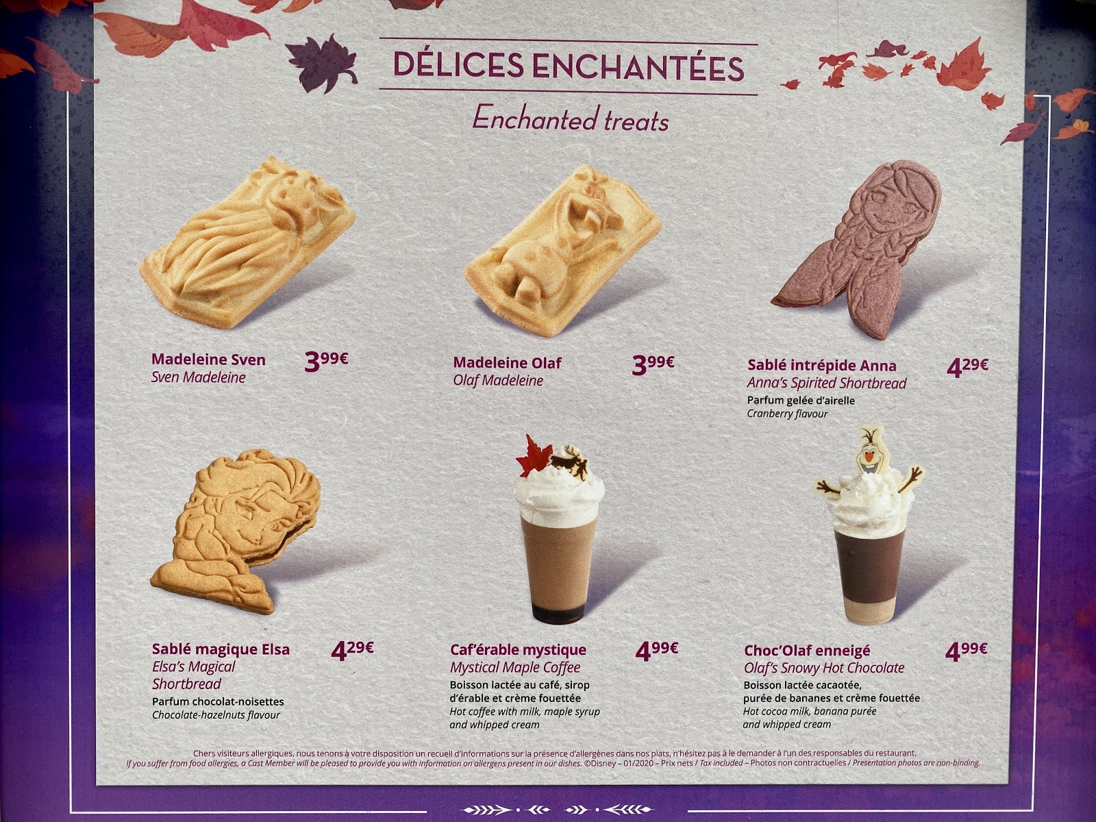 As any good Disney fan knows it isn’t a special season without some tasty themed treats and all throughout Disneyland Paris you can find plenty of enchanting Frozen foods and beverages. As you will see the core items such as the madeleines and shortbread cookies are available at each location throughout the park, but for some of the most unique offerings you have to go searching.