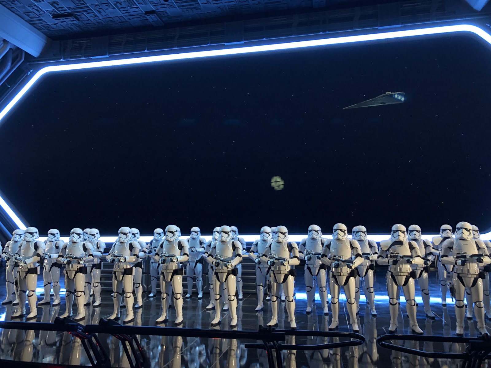Where the attraction goes from there is a whirlwind of action and excitement, and it took me several times through to fully grasp how each moment flows into the next, and how deftly the Imagineers combined a variety of state-of-the-art visual effects with old-school theme-park trickery to bring the “feel” of Star Wars to life using honest-to-goodness physical sets, numerous lifelike animatronic figures, and a smattering of projections. The best thing about Star Wars: Rise of the Resistance is that there is no one best thing-- it is instead a fully realized whole comprised of countless awe-inspiring parts.