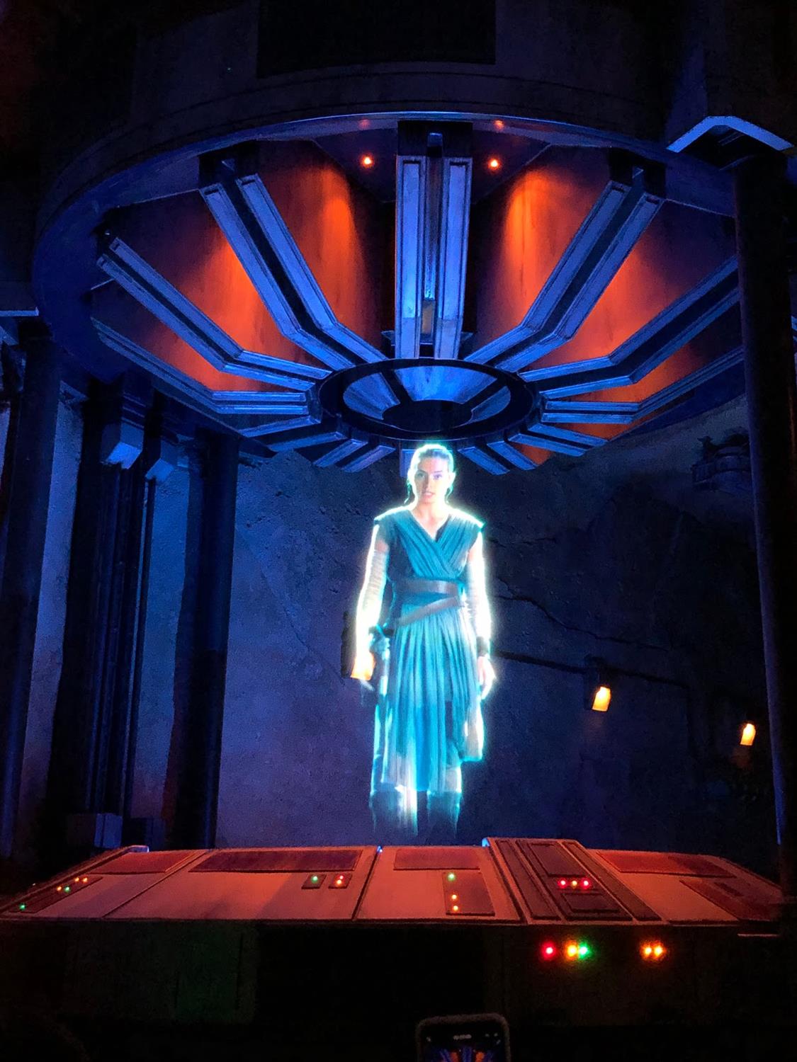 Star Wars: Rise of the Resistance is built of several pre-shows of steadily increasing immersion and intrigue, from a walk-through queue that sends you through ancient Batuuan ruins transformed into a makeshift Resistance base, to a holographic message from Rey (played by Daisy Ridley, reprising her role from the recently completed Star Wars sequel trilogy-- much like a couple of her costars), to a flight-simulator shuttle journey that rather convincingly transports you from the outskirts of Black Spire Outpost to a First Order star destroyer orbiting the planet, where you’re immediately taken into custody and thrown into a seemingly inescapable jail cell. This multi-step process may seem like overkill just to get you to the main event, but it’s all in service of selling the illusion, and it works extremely well as a whole.