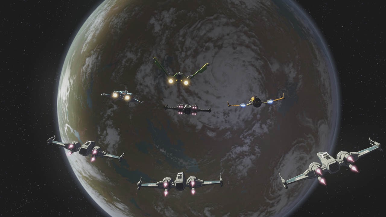 Upon arrival at Dantooine, the group of pilots is trading stories about Kaz, but they’re immediately engaged by TIE fighters. After a quick battle, they eliminate the blockade and the Resistance transports are able to leave the planet’s surface. But elsewhere, on the First Order Star Destroyer, Agent Tierney (Sumalee Montano) is praising Tam for her recent progress when word arrives about the incident at Dantooine. They jump into hyperspace and arrive just as the Aces and Resistance pilots are escorting the shuttles from orbit. Tam and Jace Rucklin (Elijah Wood) are scrambled into their TIE fighters for combat with the enemy ships. During the fight, one of the shuttles is destroyed but the other two escape with their escorts thanks to Tam having a brief change of heart and hesitating momentarily.