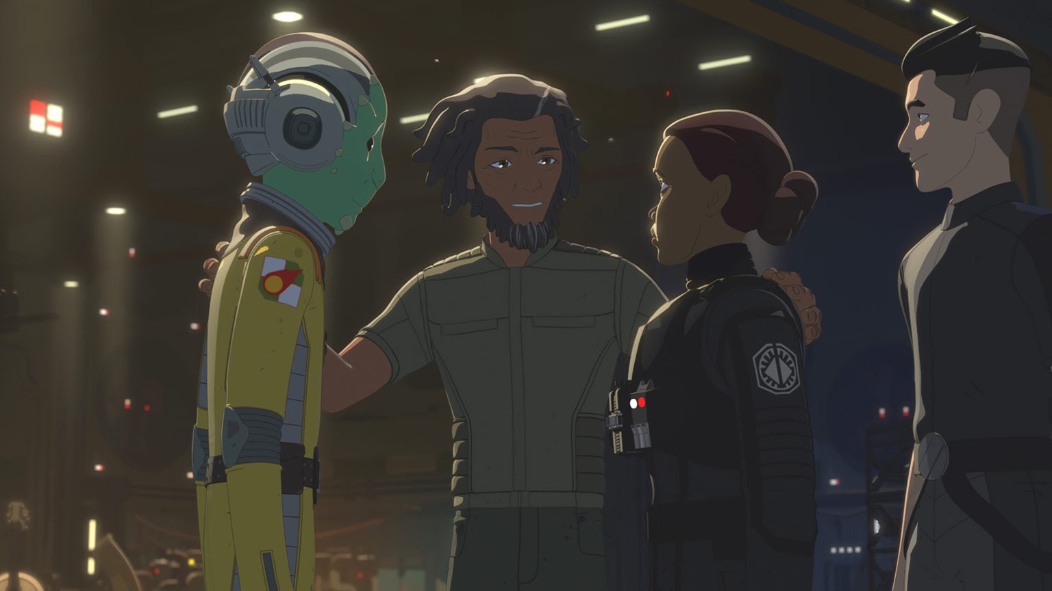 When Venisa meets Kaz, they both say they’ve heard great things about each other. Her squadron, with only these three remaining members, has arrived because they need help on a mission-- escorting Resistance recruits off the planet Dantooine and past a First Order blockade. Naturally, Kaz and Torra Doza (Myrna Velasco) volunteer to help out with the mission, and they manage to enlist Hype Fazon (Donald Faison) as well. Venisa tells Jarek Yeager (Scott Lawrence) she saw Tamara Ryvora (Suzie McGrath) aboard the First Order Star Destroyer and that she could sense the former mechanic is conflicted about her enlistment there, but needs time to process those emotions.