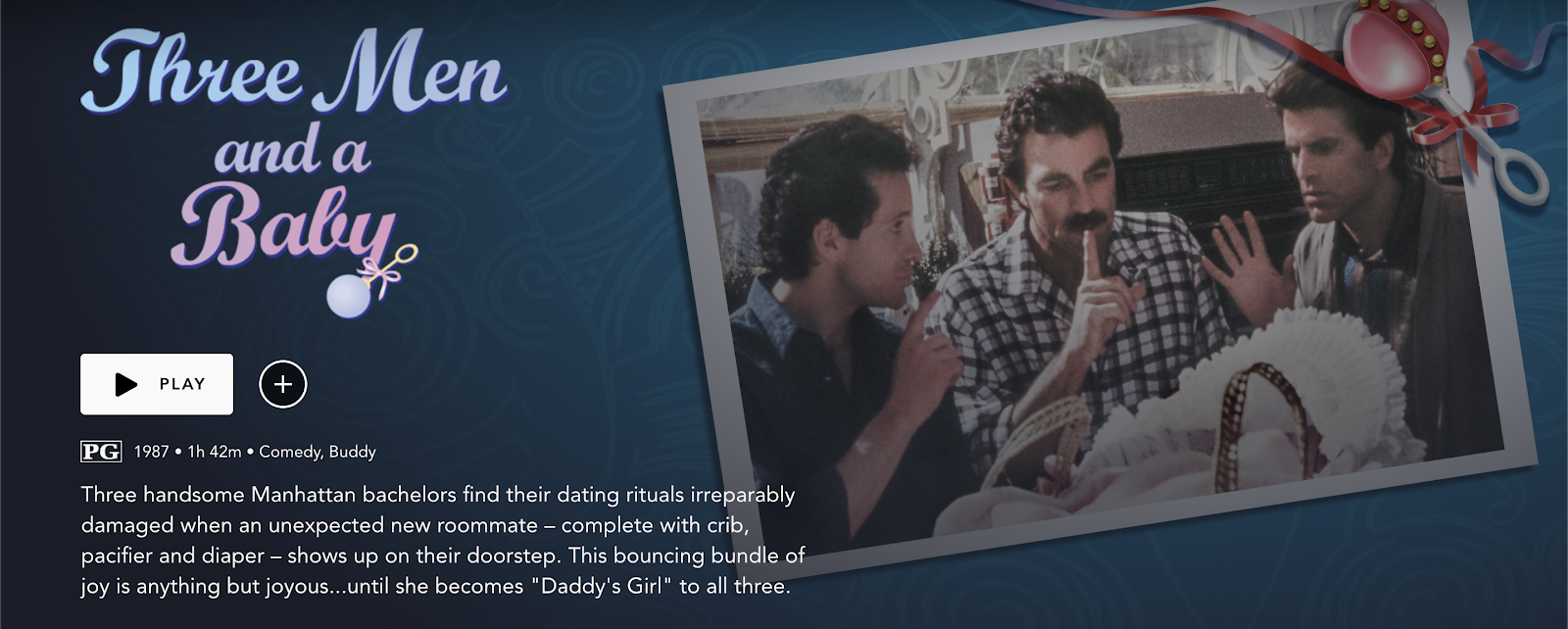 Three Men and a Baby is available on Disney+. Next week we look at its sequel Three Men and a Little Lady and whether the film measures up to the original.