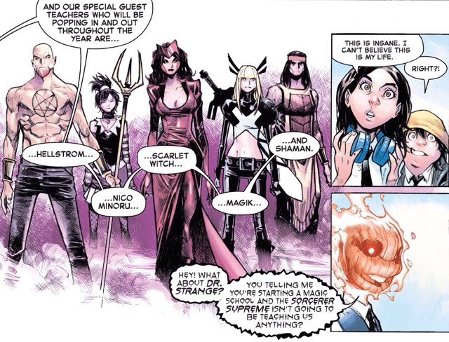 You may be thinking “that sounds like a recipe for disaster, there’s no way the teachers at this school can keep all that power in check.” You would be wrong. Strange has assembled a who’s who of magical heroes to work at this school, including Doctor Voodoo, Hellstrom, Scarlet Witch and more. Of course, the very busy Doctor Strange himself will occasionally pop in once in a while as well.