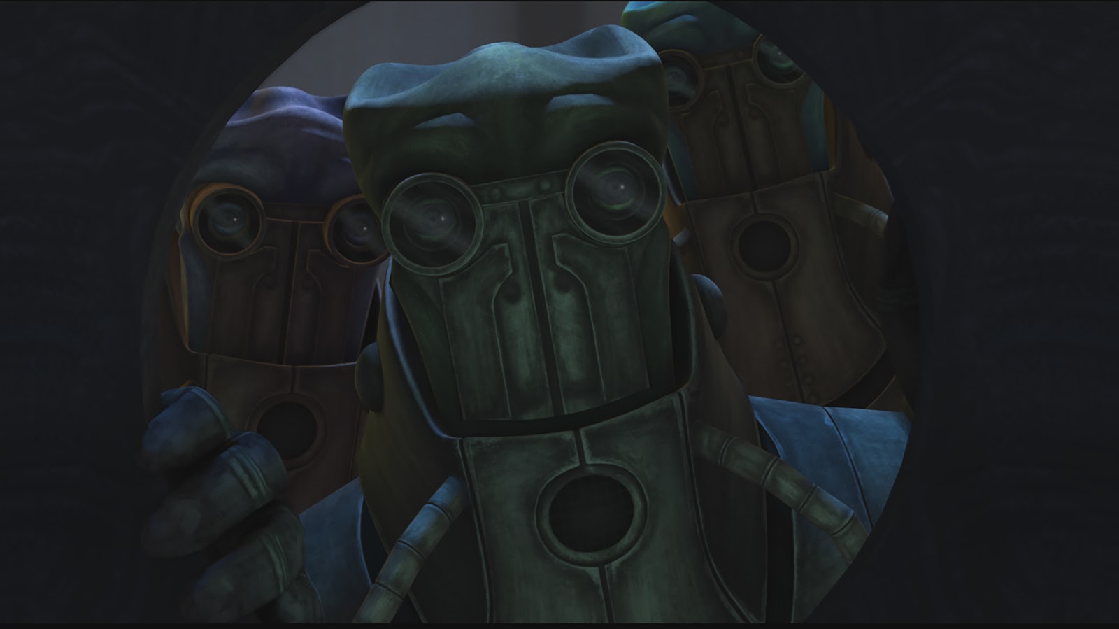 Their unsanctioned mission successful so far, our heroes find themselves surrounded by Wat Tambor’s forces as they wait for an extraction squad, while the clones try to disconnect Echo from the Techno Union computer system. The droids are closing in and Tambor gives the order to send in “The Decimator” (basically a big lethal floating ball) by the time Echo is safely removed from his enslavement. “I’ve got a big headache,” are his first words to Rex after regaining his bearings.