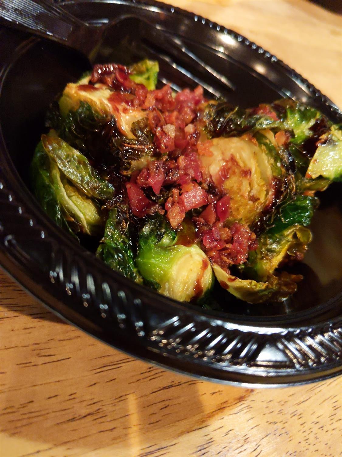 - Brussels sprouts topped with Boysenberry balsamic with bacon topping