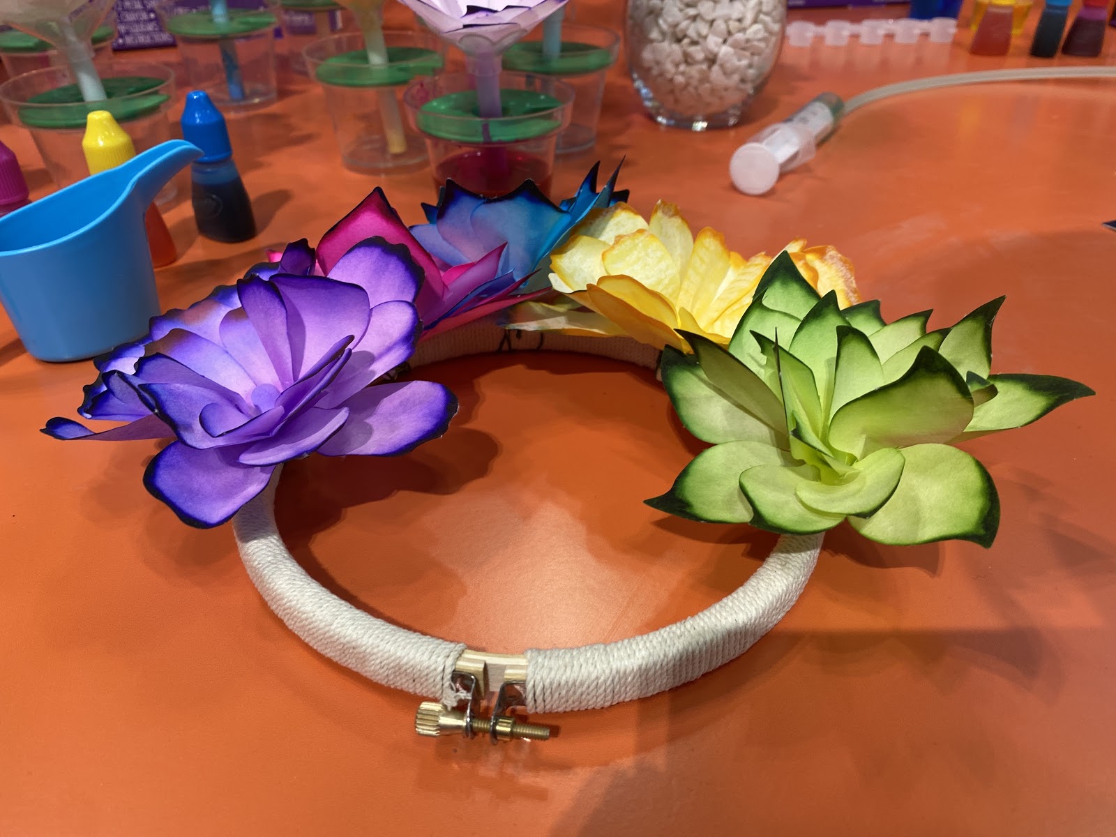 My favorite in the collection is also the prettiest, a paper flower science kit that teaches kids how plants absorb water from the soil. These white paper flowers get placed in vases of colored water and kids get to watch the flower absorb the color. When you’re done, you can use the paper flowers in other crafts, like making your own headband.