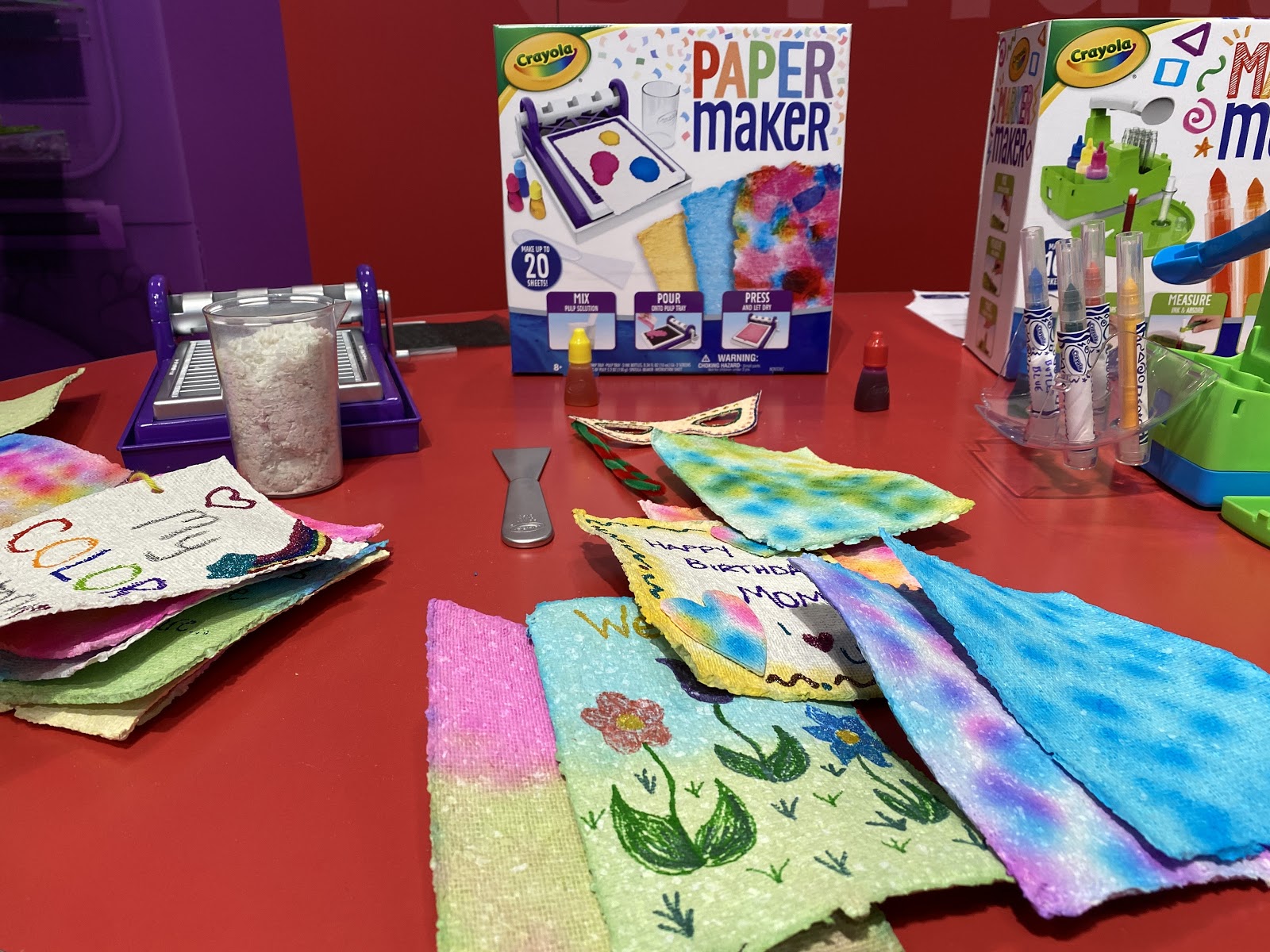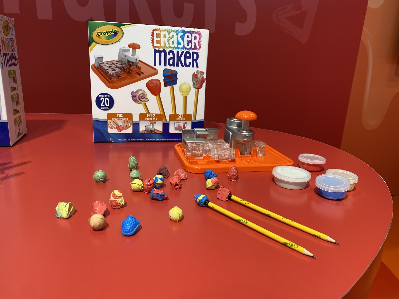 Kids love making their own things and Crayola lets them role play as one of their own employees with three kids. From mixing pulp into usable paper to filling your own markers with colored ink that you created, all of these kits are a lot of fun. But my favorite is the Eraser Maker, which comes with multi-colored putty and molds that kids press together to create their own pencil erasers that they can keep or give to their friends.