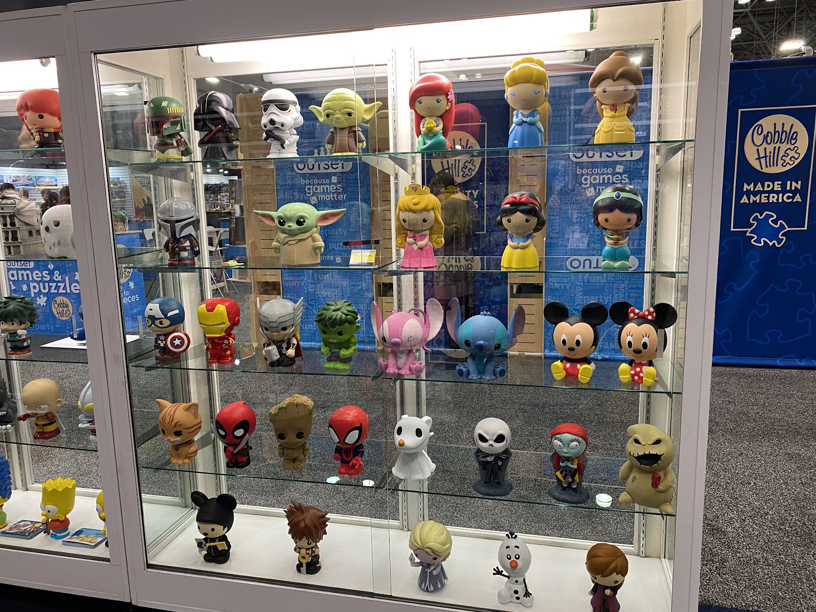 A new venture for Monogram International are character banks based on their keychain designs. The line includes a Baby Yoda from The Mandalorian, but all of the figures on display were prototypes and not final designs. Some characters seen in these photos might not make it into production, like Goose the Flerkin from Captain Marvel, but I hope they all come out. They’re certainly very cute. My other favorites are Stitch and Angel, Mickey and Minnie, Keyblade Mickey from Kingdom Hearts, and Zero from The Nightmare Before Christmas.