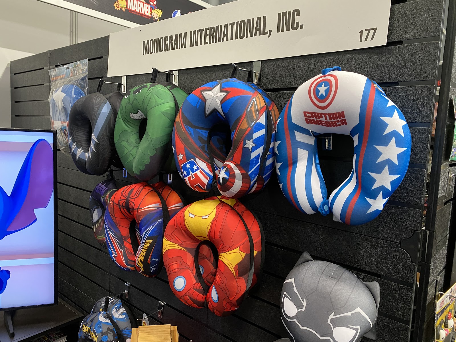 Marvel fans can accessorize their air travel experience with themed neck pillows for characters like the Black Panther, Captain Marvel, Hulk, Iron Man, Spider-Man, and Captain America.