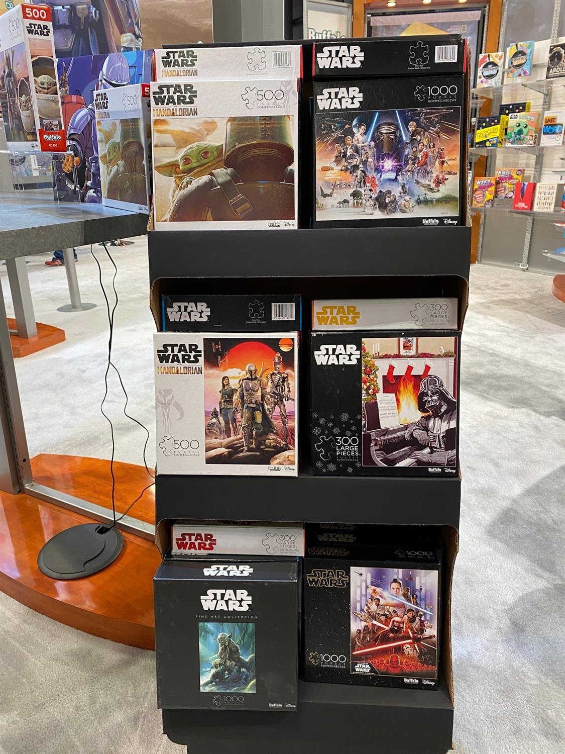 In addition to the game, Buffalo has the exclusive license on puzzles based on Star Wars characters, with a line of Mandalorian puzzles coming soon. Of course, they feature “The Child” prominently.