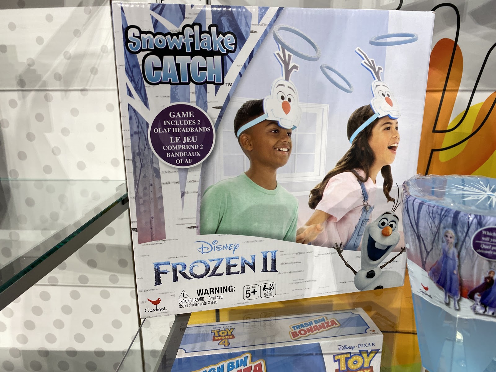 Kids put on Olaf headbands while another player tosses rings in the air. Catch the rings around Olaf’s stick hair to win the game.