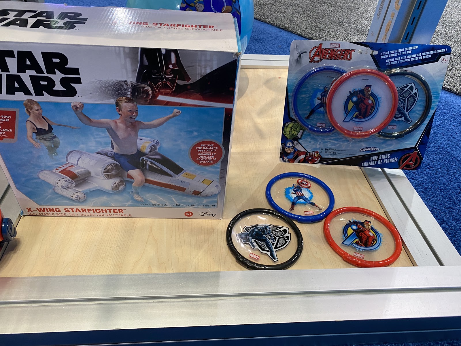 Swimways has been bringing Disney branded fun to pools for a few years now. My favorite item is the inflatable Mickey Mouse drink holders. New toys include a Slinky Dog water pump gun and Marvel dive rings that include Black Panther.
