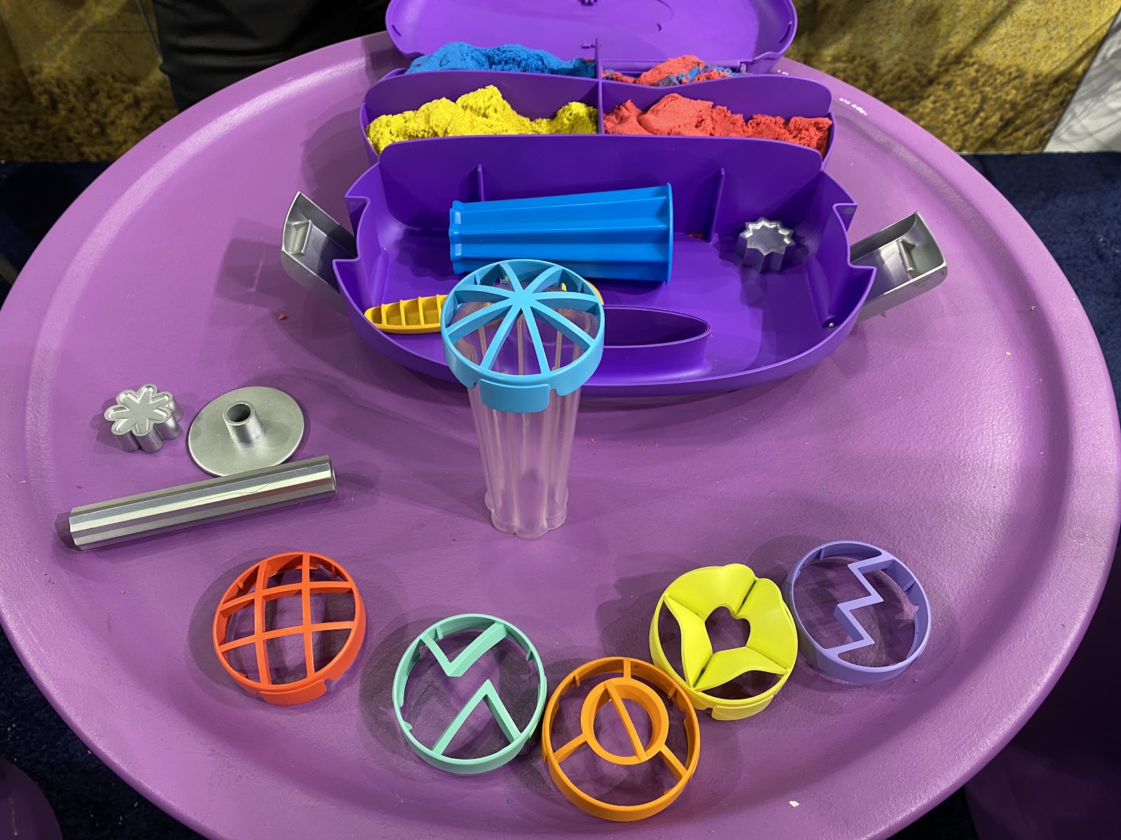 For people who love watching Kinetic Sand get cut on YouTube, a new activity kit called Sandwhirlz is for you. It includes a tube that you can pack Kinetic Sand through and six different shaped tops that make it come out in mesmerizing ways.