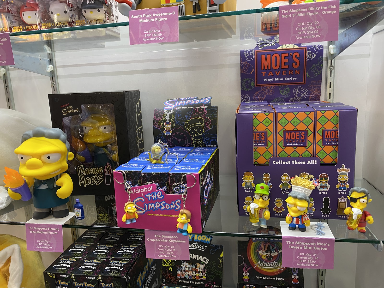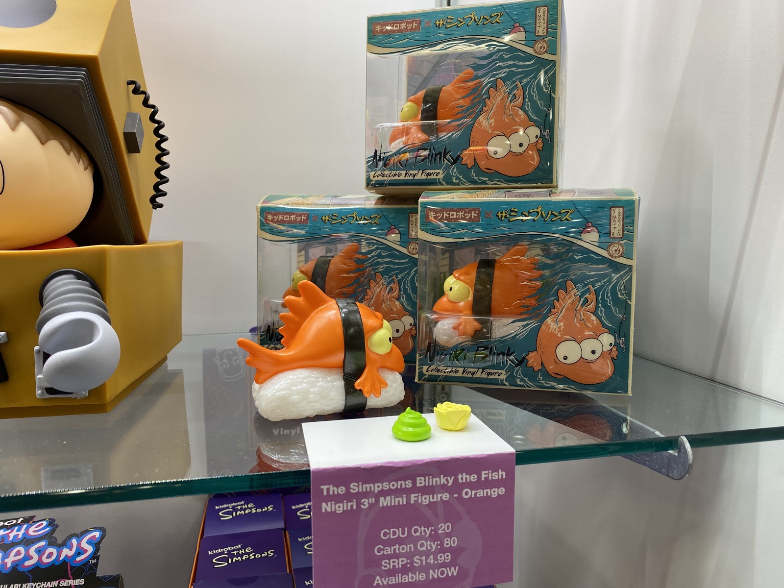 Let’s not forget The Simpsons, with a blind box series themed to Moe’s Tavern, a keychain series, a Flaming Moe medium figure, and Blinky the Fish Nigiri sushi roll.