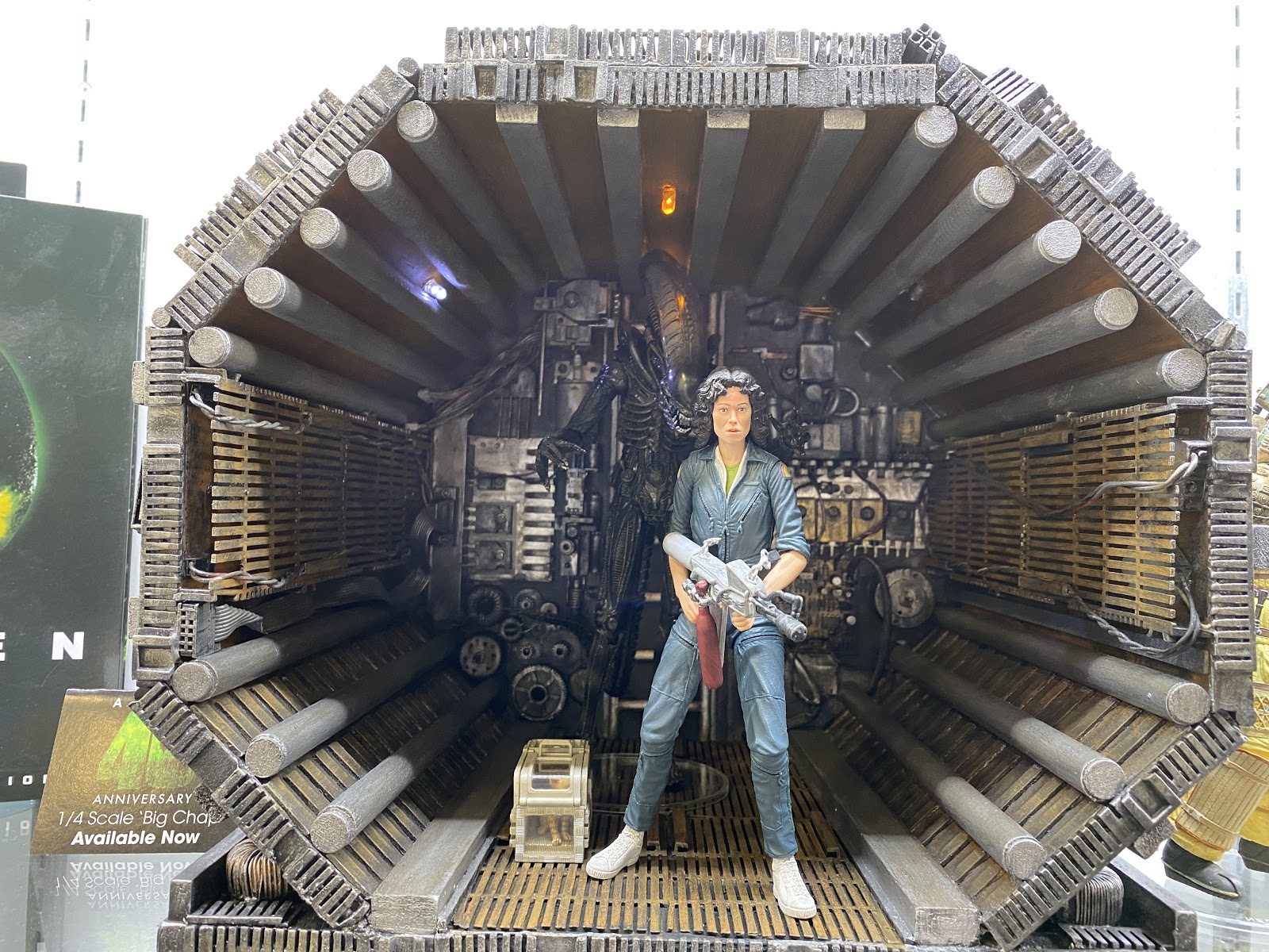 “This is Alien. You are on the spaceship Nostromo with Sigourney Weaver.” No, it’s not The Great Movie Ride, but it almost could be with this 40th Anniversary “Big Chap” deluxe display. “Look out behind you!”