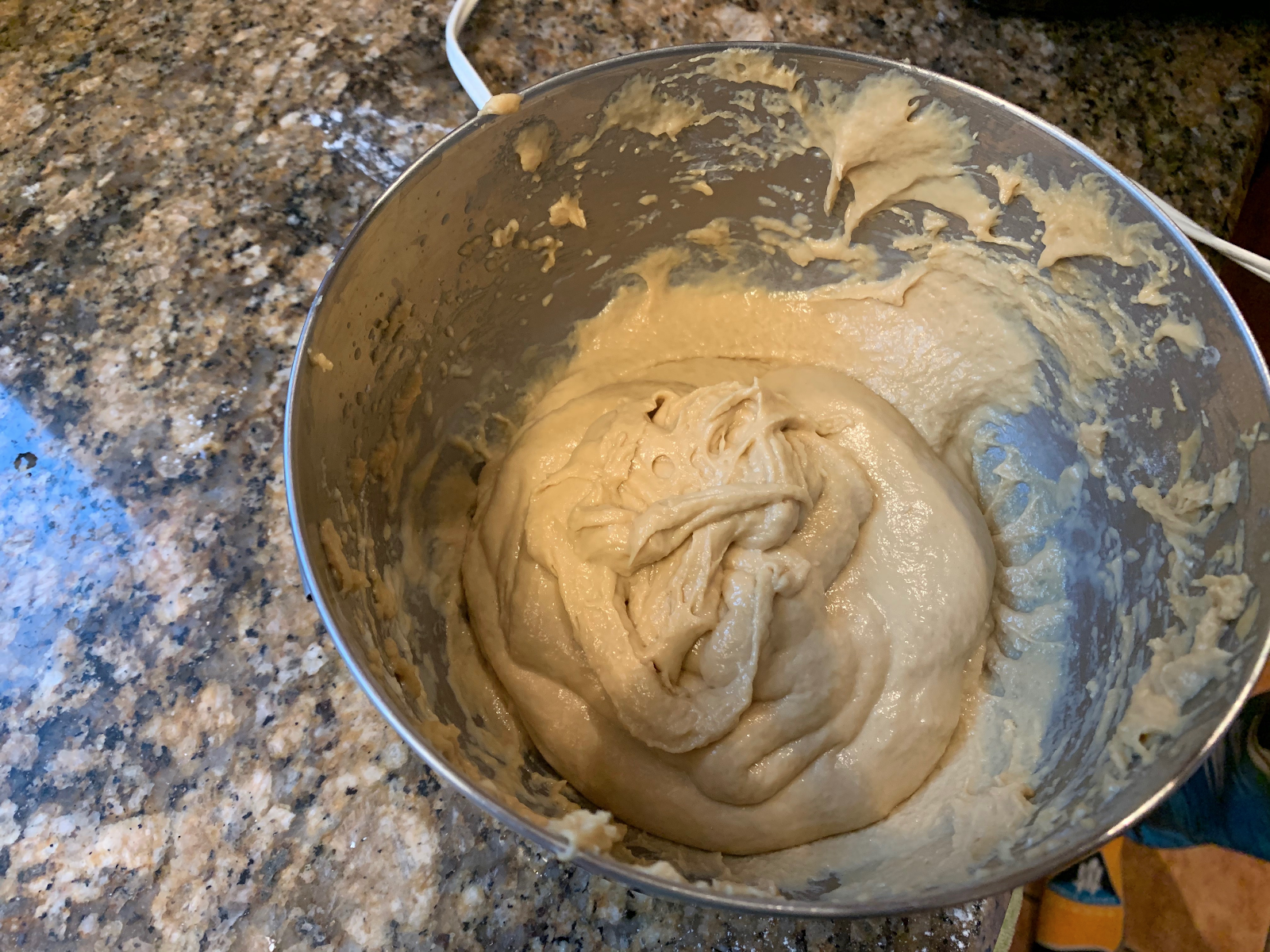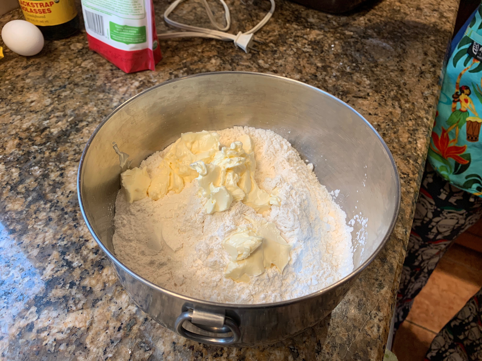 1) Combine flour, powdered sugar, and plant-based margarine in a bowl or electric mixer fitted with paddle attachment. Beat on medium speed until smooth. (Note: I just used a spoon to beat it without an issue.)