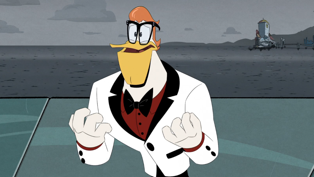Scrooge McDuck’s simpleminded pilot Launchpad McQuack takes center stage in this week’s DuckTales episode, which sees Launchpad (voiced by Beck Bennett) and his best buddy Dewey (Ben Schwartz) playing a very James Bond-esque AR game at Funso’s Funzone-- a game that evolves into a much more realistic secret-agent adventure thanks to some F.O.W.L. (AKA the Fiendish Organization for World Larceny) agents using the kids’ entertainment center as a secret hideout.