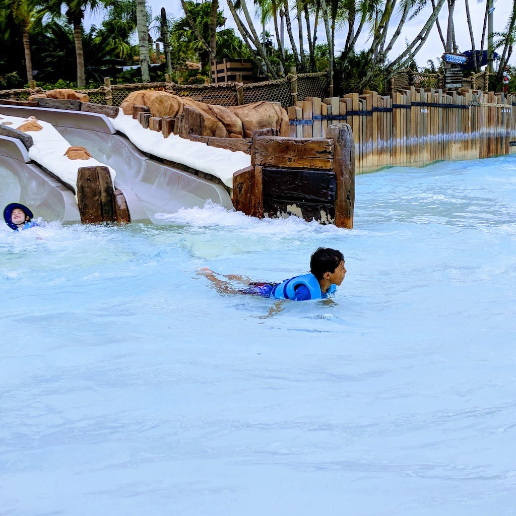 “At the base of the Bay Slides at Typhoon Lagoon, you'll find a seating area where the waves of the surf pool provide refreshing splashes as you watch your child slide over and over. Perfection!”