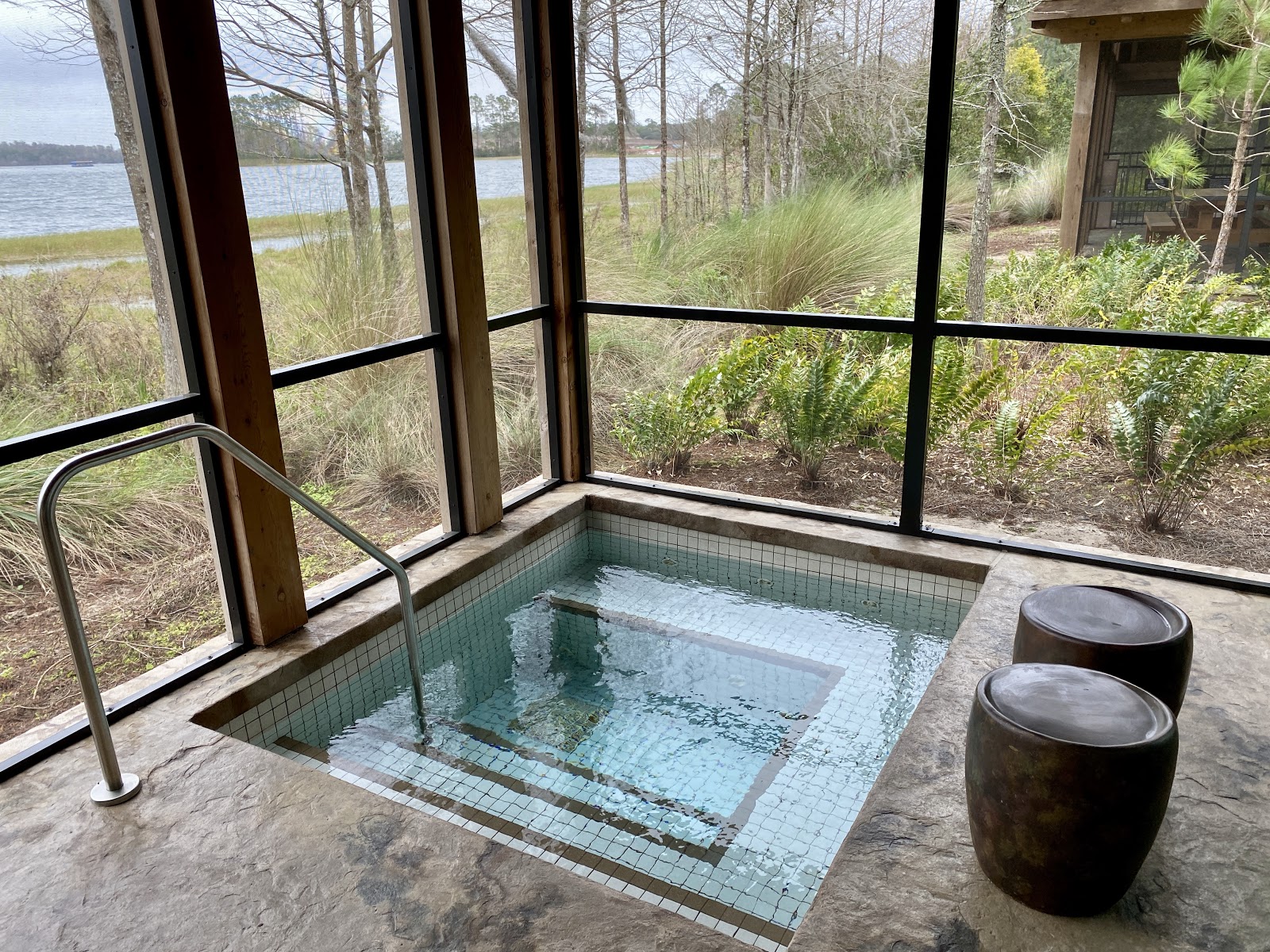 A true highlight of the cabins is the beautiful view of Bay Lake that can be enjoyed from the private porch, which also includes a private hot tub.
