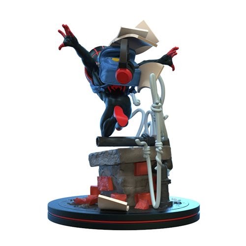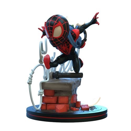 - This dynamic Q-Fig captures Miles Morales sprinting across the rooftops of the city just as he uses his web-shooters to spell out "Spidey", in case anyone wasn't sure who saved the day.
