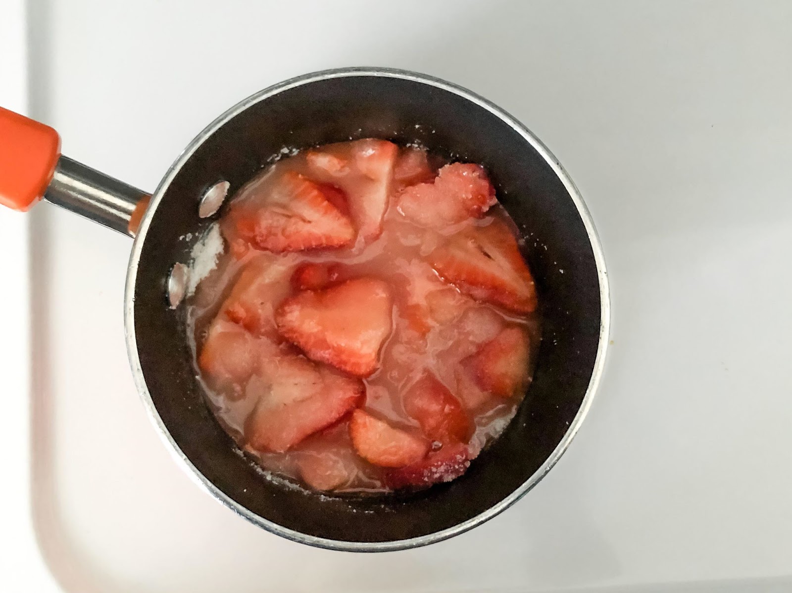 The sugar, strawberry and lemon juice are actually only needed to make your own strawberry jam. If you want to make this recipe a bit simpler, you can pick up your favorite brand of strawberry jam instead. If you choose to do so, you can skip right to step 3.