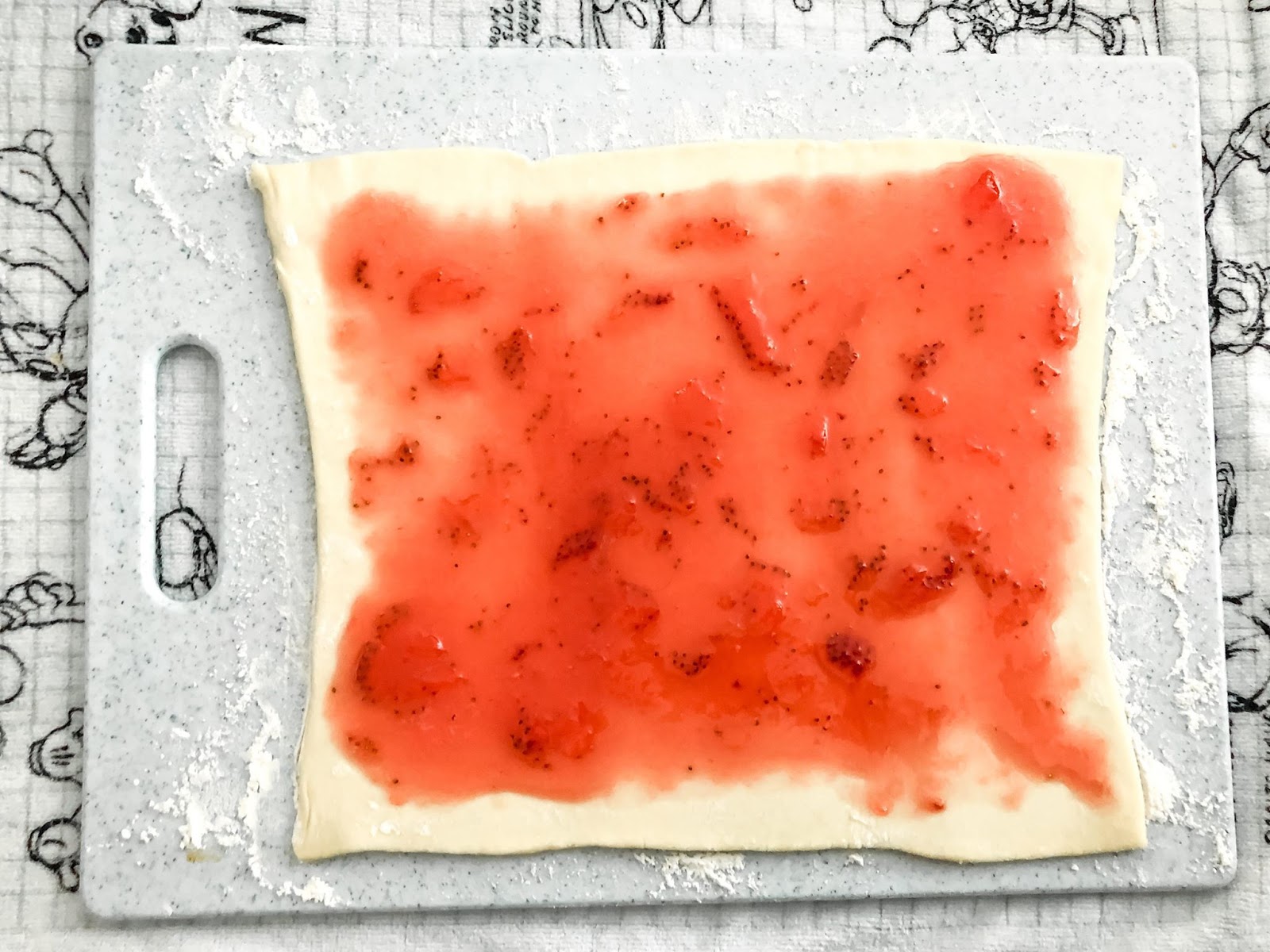 4) Spread pastry sheet with 1/3 cup of the strawberry mixture. (Refrigerate any remaining strawberry mixture for up to 5 days)
