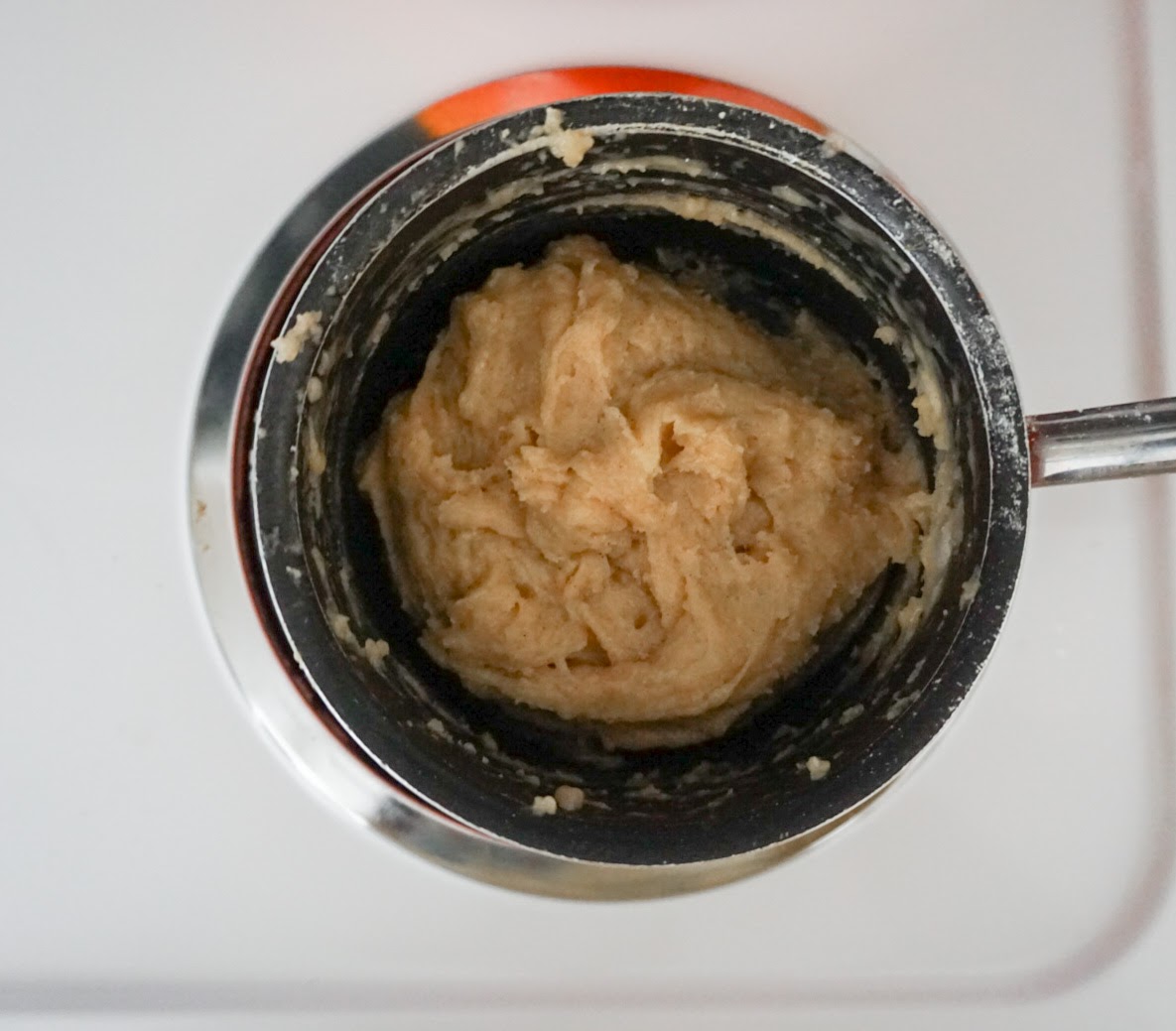 5) Spoon dough into piping bag fitted with large star tip. Don’t have a piping bag? Neither did we. Instead, use a sandwich bag and cut a small opening in one of the bottom corners. This will work just as well.