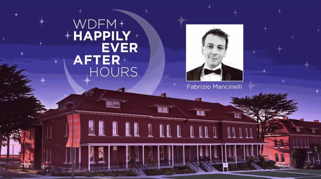 The Walt Disney Family Museum’s fourth Happily Ever After Hours guest was composer Fabrizio Mancinelli, a lifelong Disney Fan who provided the music for the documentary film Growing Up with Nine Old Men and is currently working with Disney Legends Richard Sherman and Andreas Deja on the animator’s upcoming film Mushka. Here are ten things we learned from Fabrizio’s Q&A.