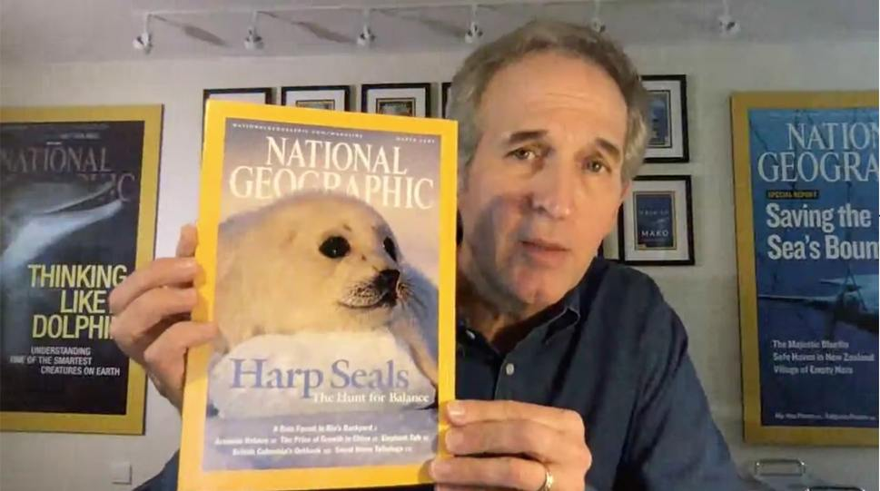 Broadcasting live from his studio in Southern Maine, Brian Skerry most recently worked on the Earth Day special Born Wild: The Next Generation on the humpback whale segments filmed in Hawaii. His trip was cut short due to the global pandemic and he self-quarantined in his office for two weeks before seeing his family just in case he was contagious.