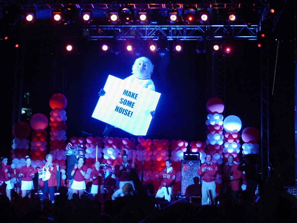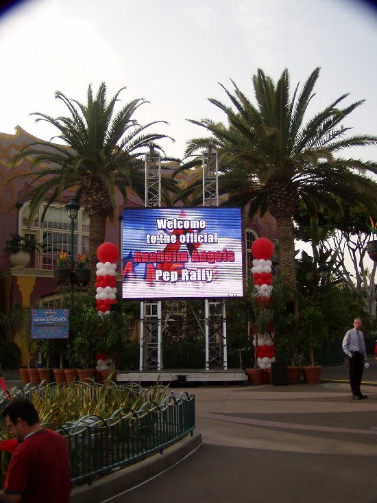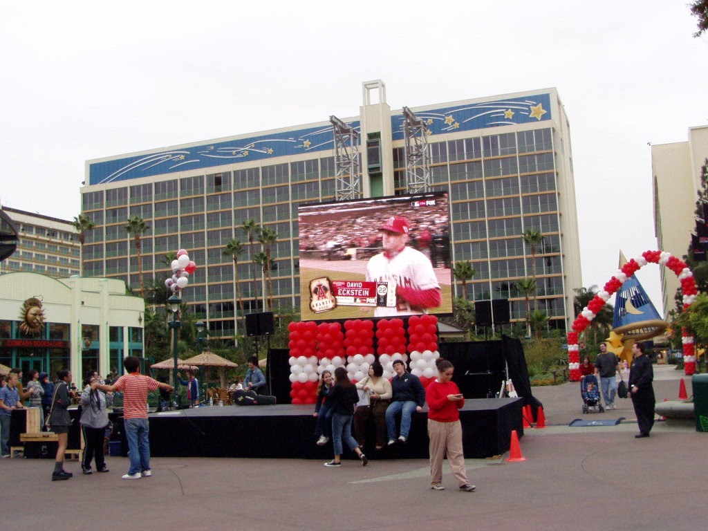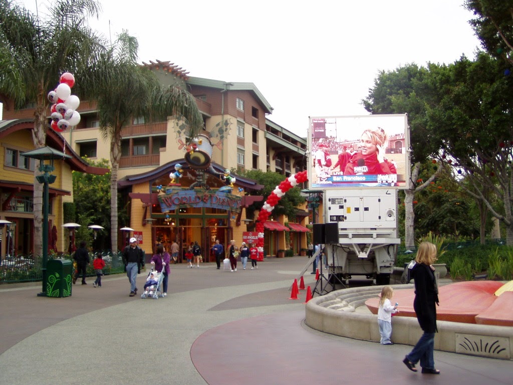 Jumbotrons were setup throughout Downtown Disney for the Pep Rally and will remain through the World Series
