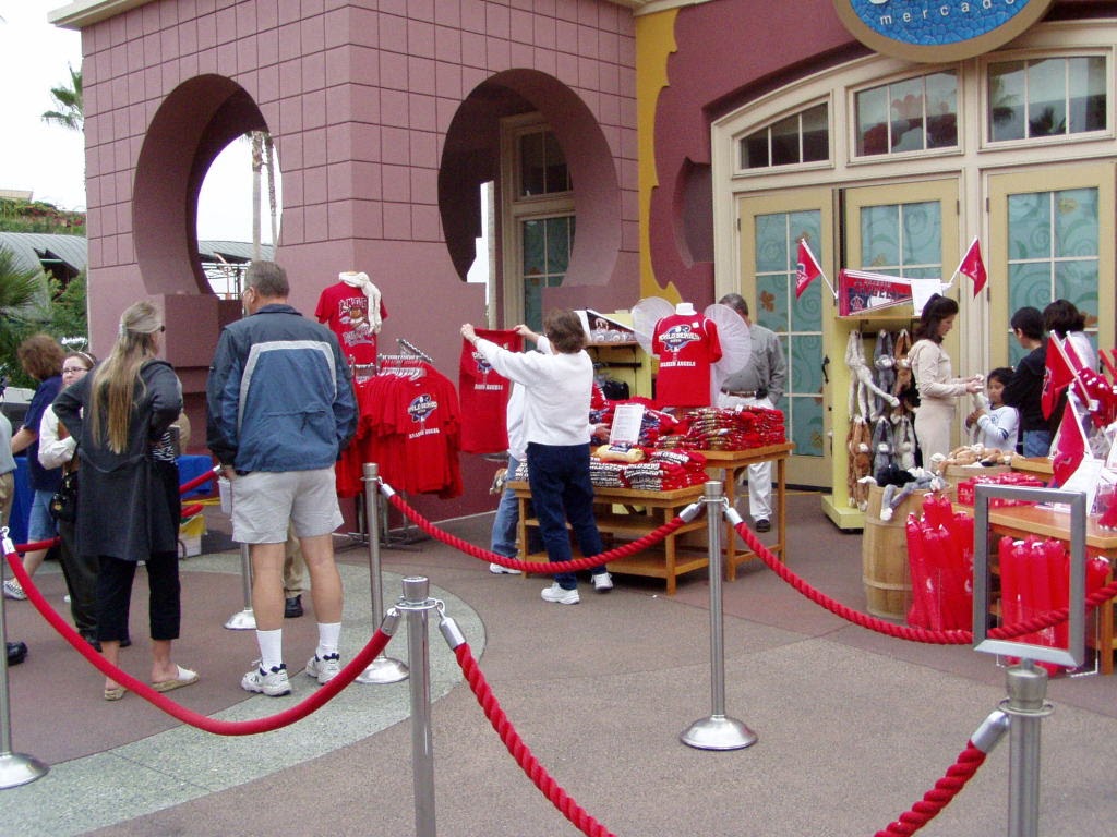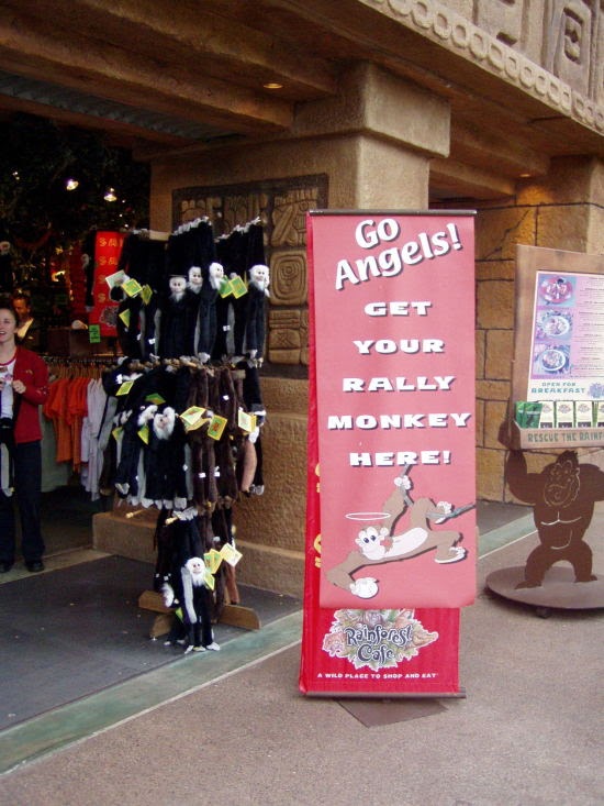 Rally monkeys and Angels memorabilia for sale just inside Disneyland.