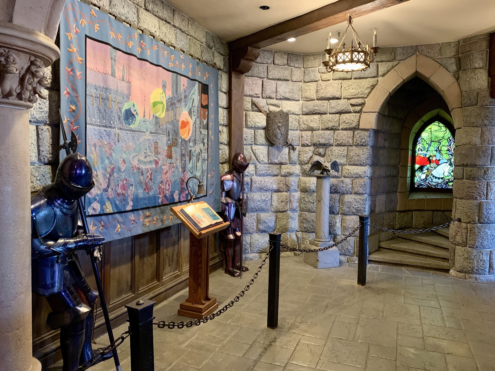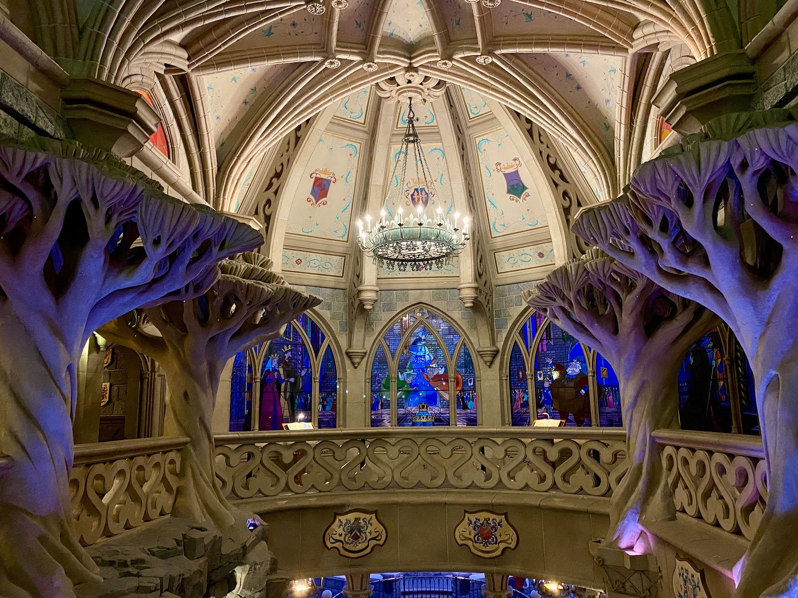 One of the most unique aspects of this walkthrough (as opposed to the one in Disneyland) is that guests are walking around the upper floor of the castle and able to look down as guests pass through the castle. This provides a great view across to the other side of the castle.