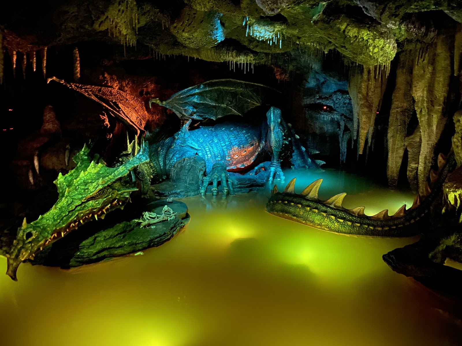 La Tanière du Dragon (The Dragon's Lair) is home to an 89 ft (27 m) long Audio Animatronic dragon. This figure, when first built, was the longest AA figure. Sculpted originally by puppeteer and former Disney imagineer, it sleeps peacefully but, every few minutes, wakes to chase away anyone who has entered her lair.