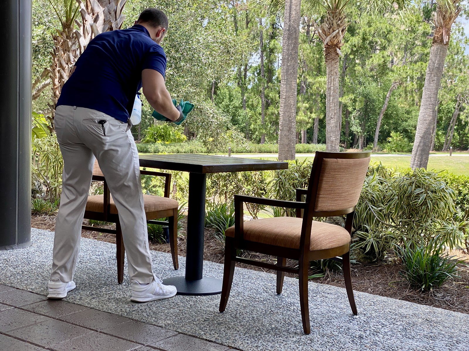 While dining, other guests had come and gone from tables around us and, before any other guests were seated, the chairs and table would receive a thorough wipe down with santazier from the staff.