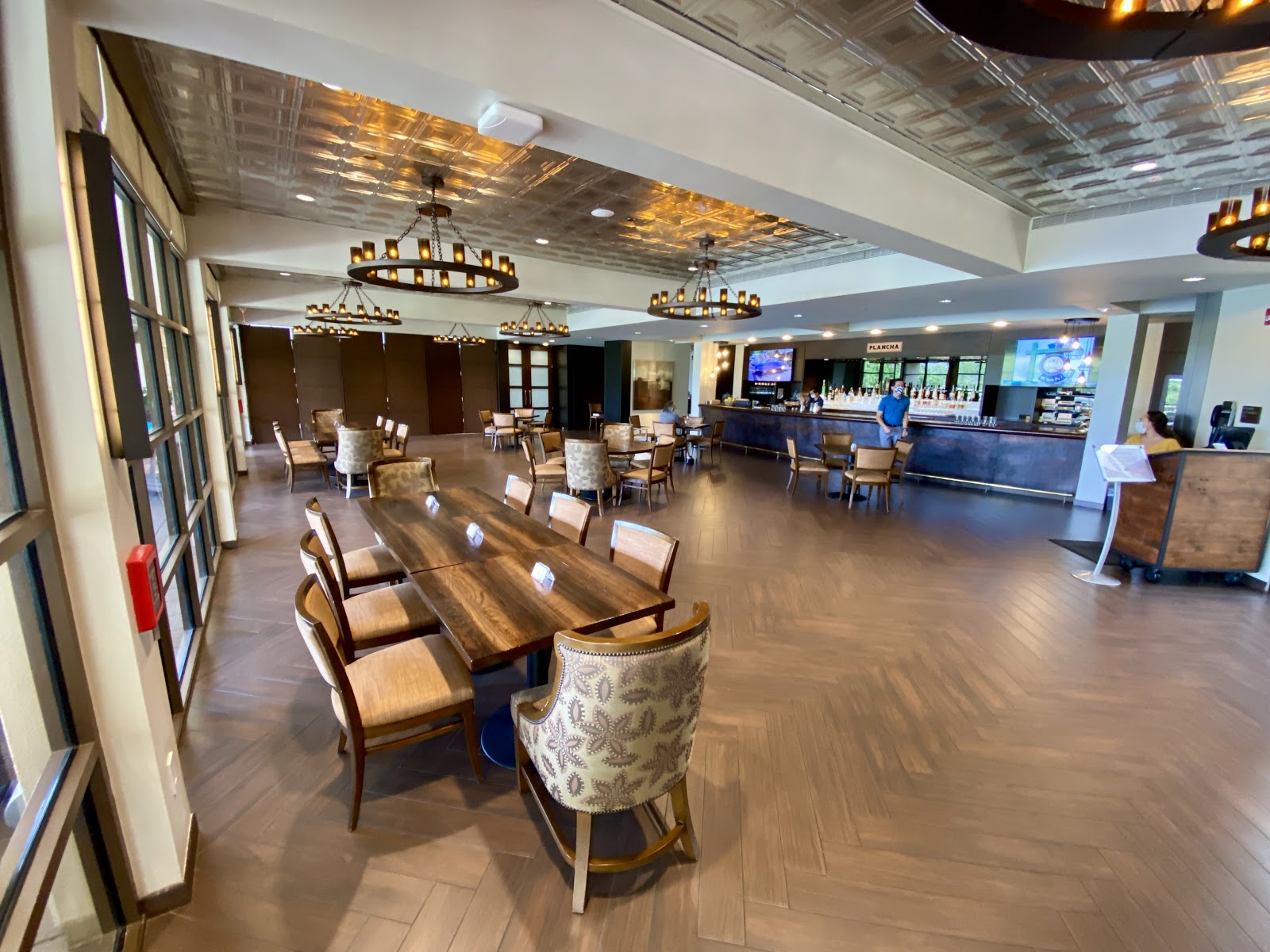 The inside dining room was very well spaced out and set up for tables with larger parties while the outside patio seating had large top tables as well as space for smaller parties that provided a beautiful view of the golf course.