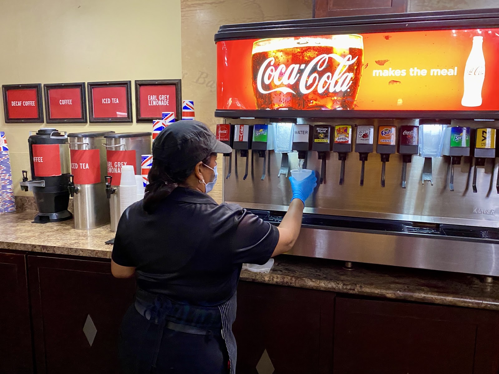 Earl of Sandwich and Blaze Pizza had some of the biggest changes as they both offer refillable fountain drink stations that are now managed by staff from the restaurants. At these locations, they would take guests orders and fill the cups before handing them to the guests. Then, if guests returned for a refill, they would be handed a new cup.