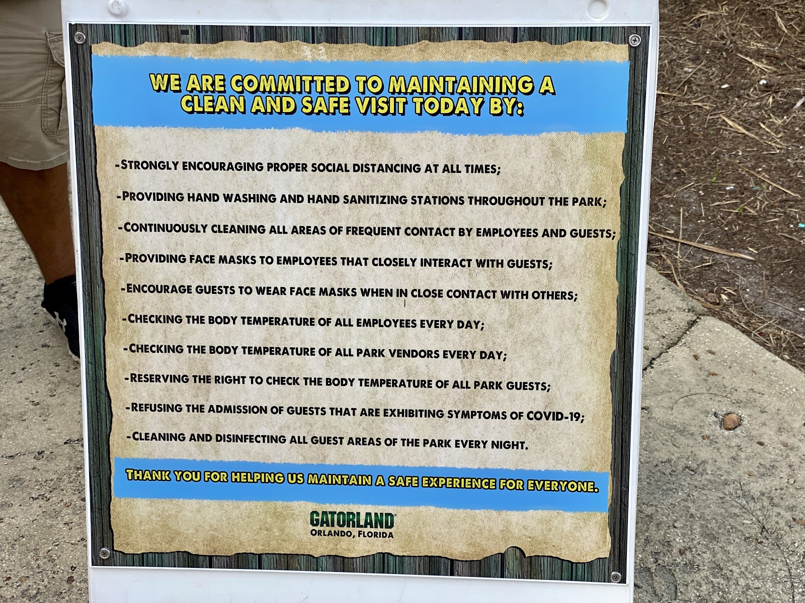 - All public surfaces throughout the entire park are thoroughly disinfected every night