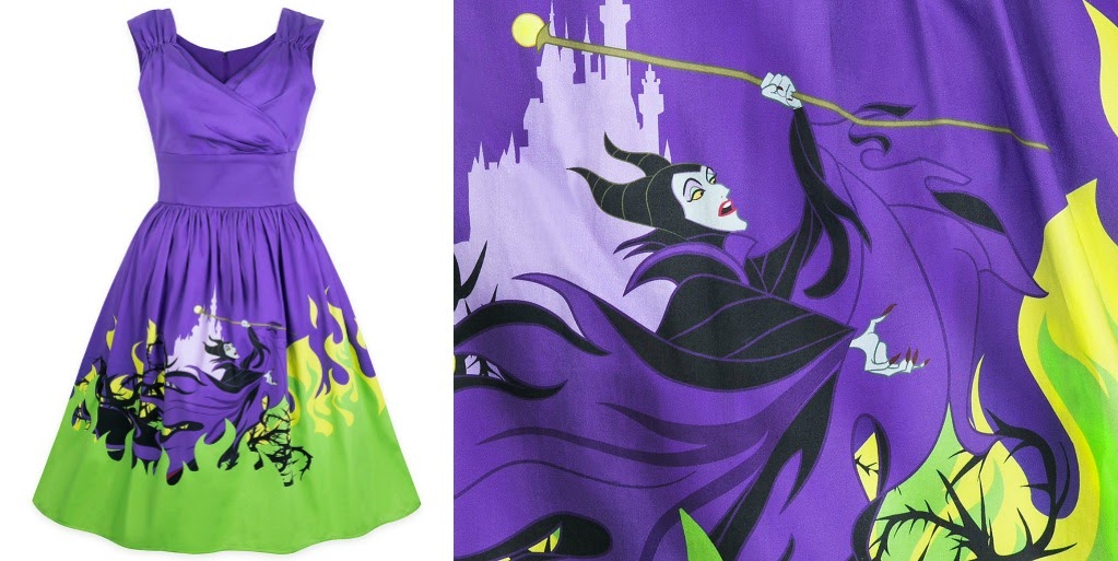 Disney villains have always had an interesting fashion sense and Maleficent is no exception. The dark spell caster from the animated classic, Sleeping Beauty is the latest inspiration for the Disney Dress Shop collection on shopDisney. She’s featured front and center on a brand new brightly colored gown that radiates rich hues of purple and green.