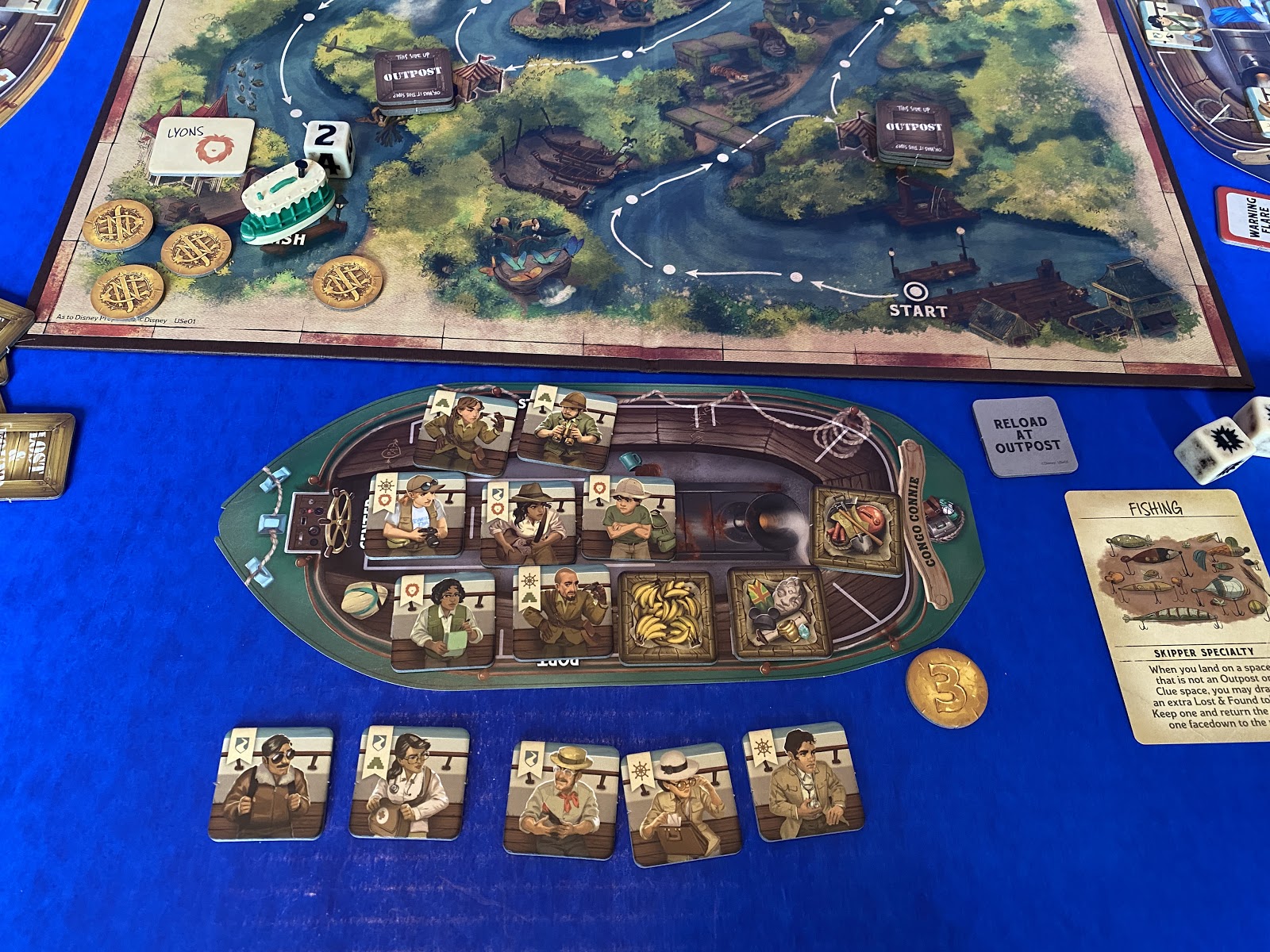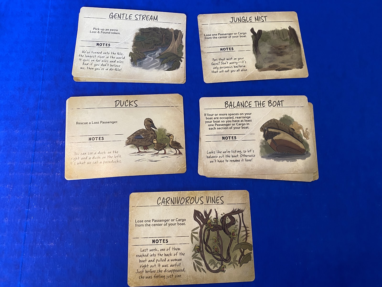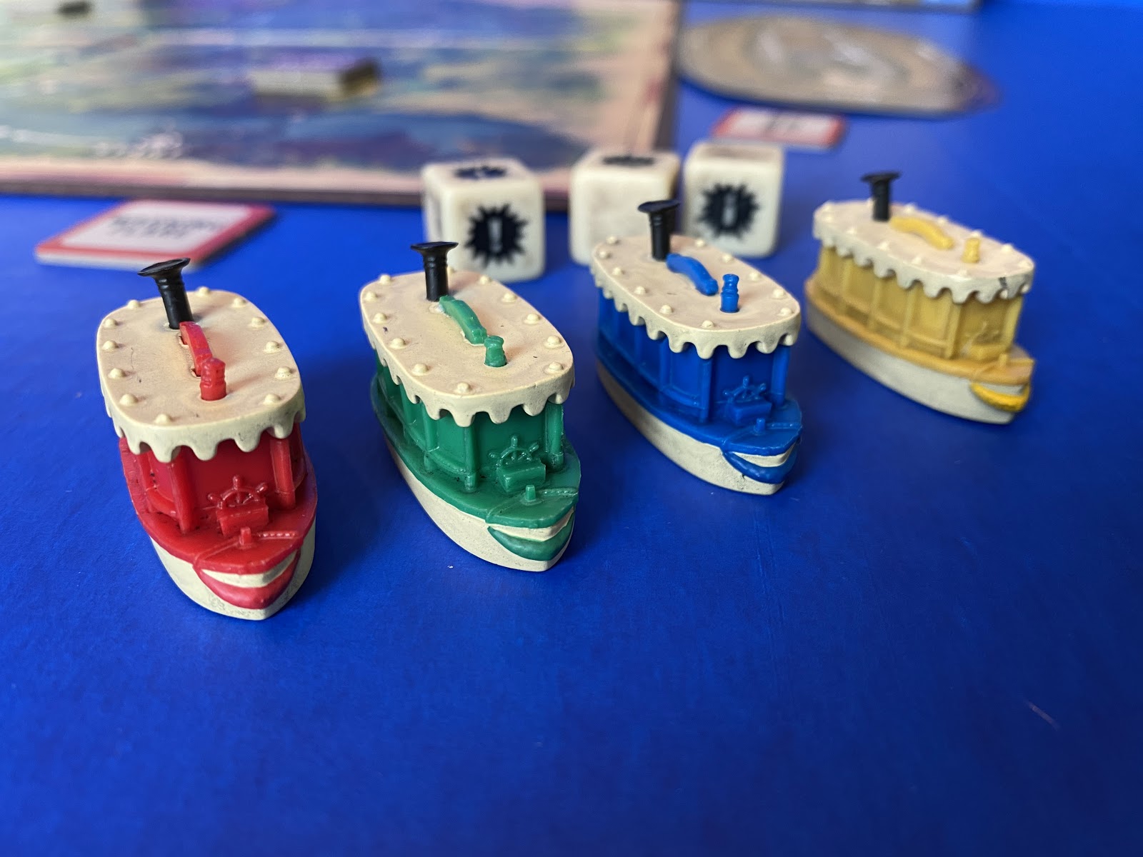 There is still an advantage to being the first to reach headquarters with tips that can be picked up on each skipped turn to add to your value. But truly the best strategy is to take your time and try to have a full boat when you arrive. Players can also rearrange their boat at the start of each turn and the instructions give a helpful hint: The safest place on the boat is in the center.