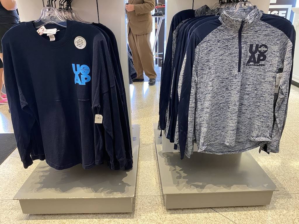 Navy blue spirit jersey featuring the UOAP logo in bright blue. Zip pullovers are available in gray and navy or gray and black. Which do you like more?