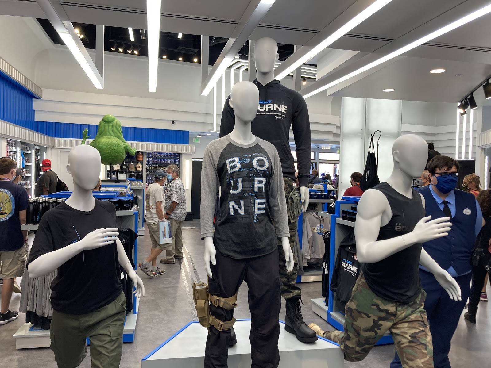 The show ends with a great action sequence and the logo as Moby’s “Extreme Ways” (the popular theme from the movies) playing. It’s a great moment that, in both of my viewings, drew a big applause from the audience. Then, as guests exit the theater, they of course spill out into the new Bourne gift shop where they can find all kinds of great merchandise for the new attraction.