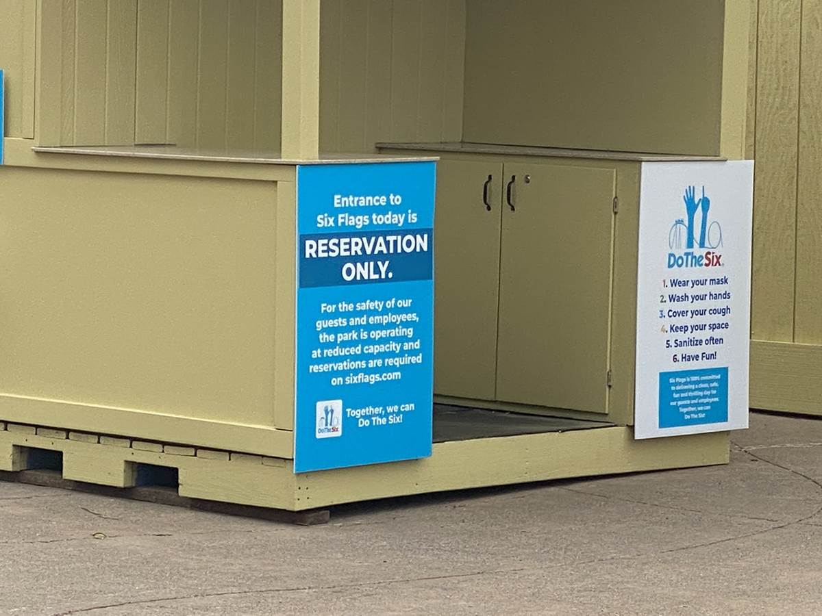 Before reaching the entrance, Guests go through a walk-through temperature screening and a hands-free security system that scans entrants for weapons without needing to open bags or empty pockets. Six Flags has an easy to remember six step safety plan that is posted outside the park and repeated over the speakers in the park between background music tracks.