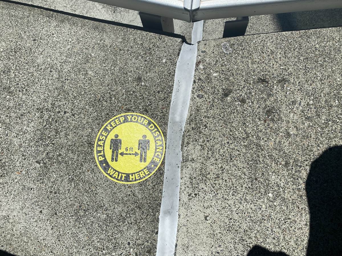 Six Flags Discovery Kingdom typically has a capacity of 12,000, but is capping the daily attendance at 2,000 during the Marine World Experience. Walk-though animal experiences have yellow circles on the ground for parties to stand on to help maintain a six-feet distance from other groups.