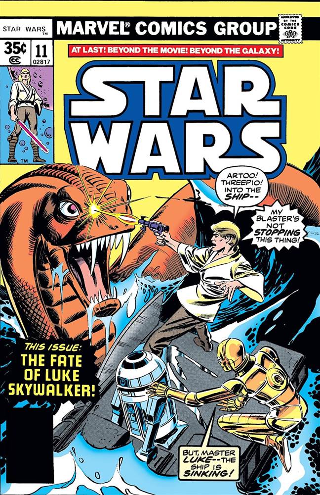 Hello and welcome to another installment of Laughing Place’s ongoing analysis of Marvel’s original Star Wars comic book, which first launched in 1977 ahead of the release of Star Wars in movie theaters. Issue #10 was published on January 10, 1978, making it the first chapter to come out in the following year. It was also the final issue of Star Wars produced by the title’s original writer/artist team of Roy Thomas and Howard Chaykin. In the bullet-point list below, I’ll go through this issue panel-by-panel, pointing out any oddities or interesting tidbits along the way.