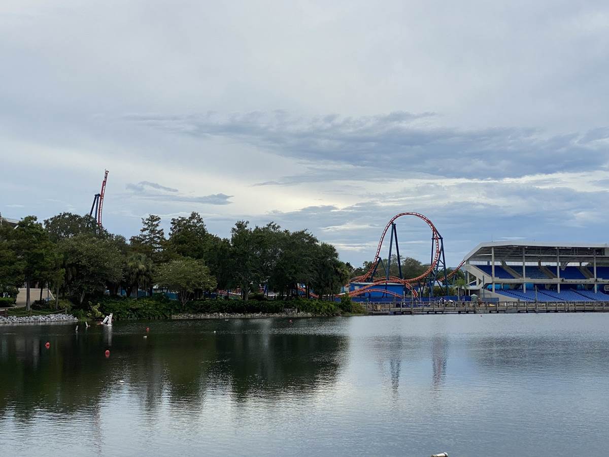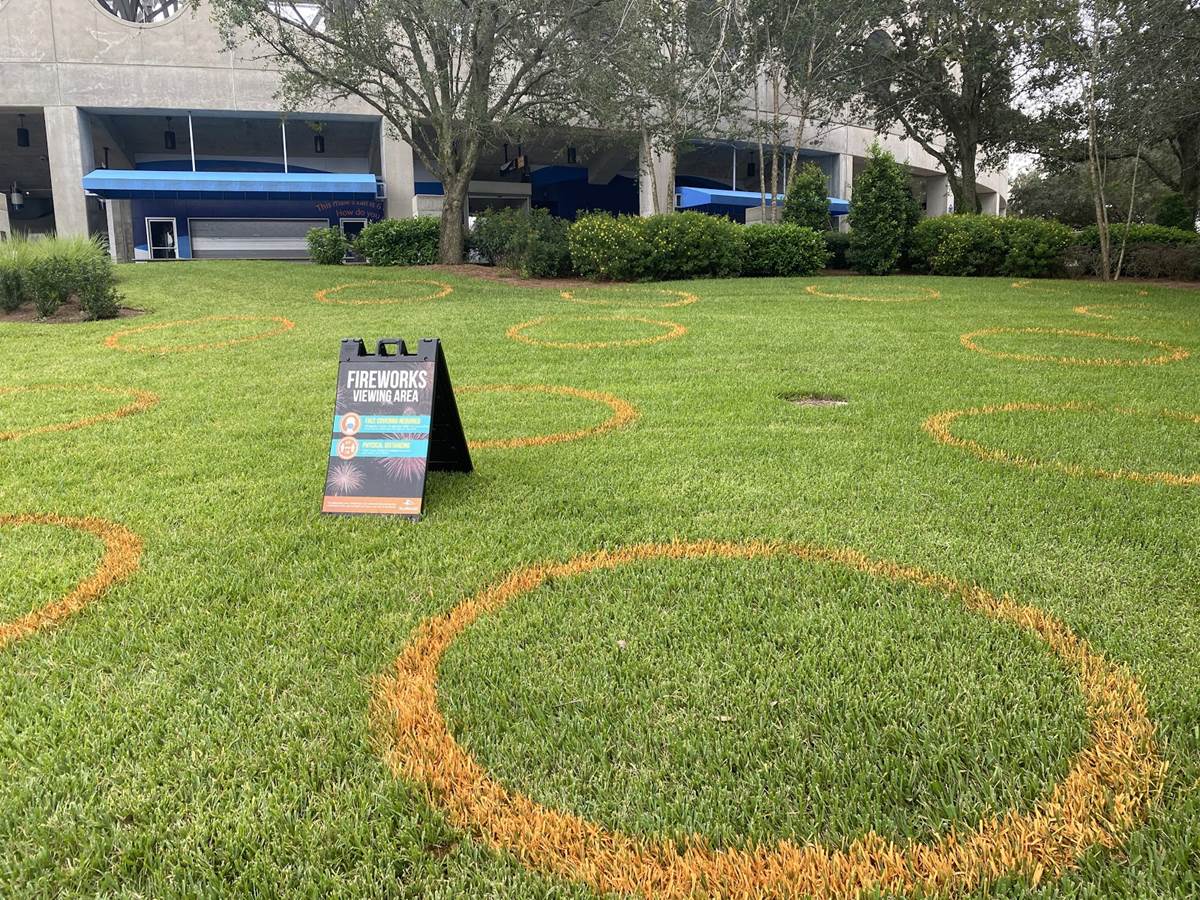 Later in the day, other attractions and exhibits began to close early as part of the “Flicks and Fireworks” campaign that was also going on over the weekend, including Journey to Atlantis, Dolphin Cove, and Stingray Lagoon. The park is still utilizing the same socially-distant fireworks setup that was implemented over Fourth of July weekend, with designated viewing areas around the Bayside Walkway, and even marked out in green spaces around the park.