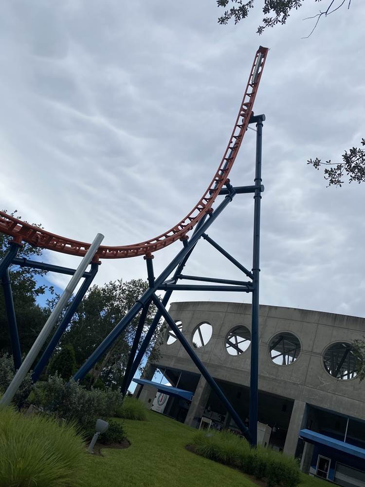 While we were there, we also got to check out the progress on the new coaster, Ice Breaker. Named after the icy Arctic summits, Ice Breaker will feature four launches, both backwards and forwards, culminating in a reverse launch into the steepest beyond vertical drop in Florida — a 93-foot tall spike with 100-degree angle.