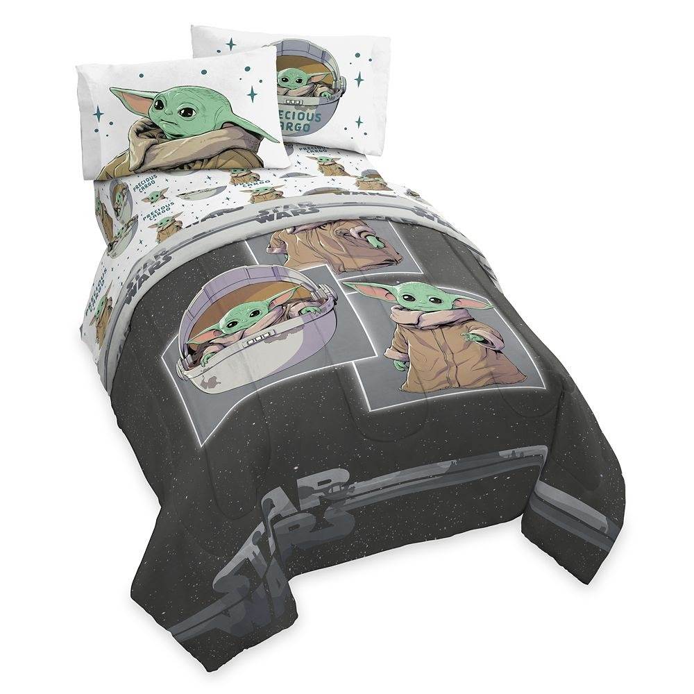 “Featuring the adorable Child from Star Wars: The Mandalorian, the super soft comforter, stellar sheets and standard pillowcase are perfect for those in search of a comfy sleep.”
